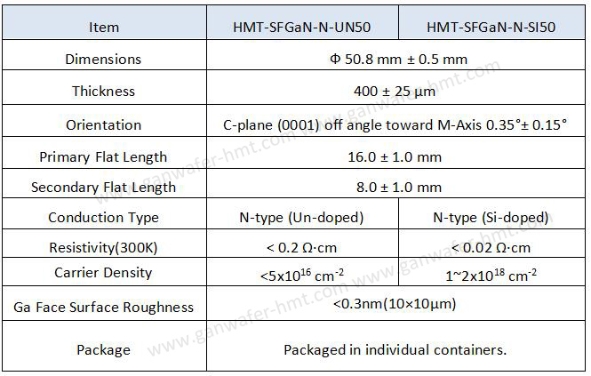 2英寸自支撑氮化镓衬底晶片规格